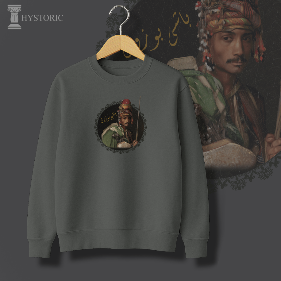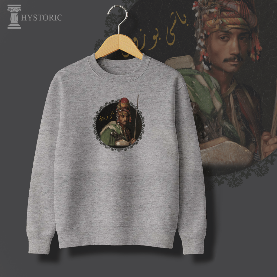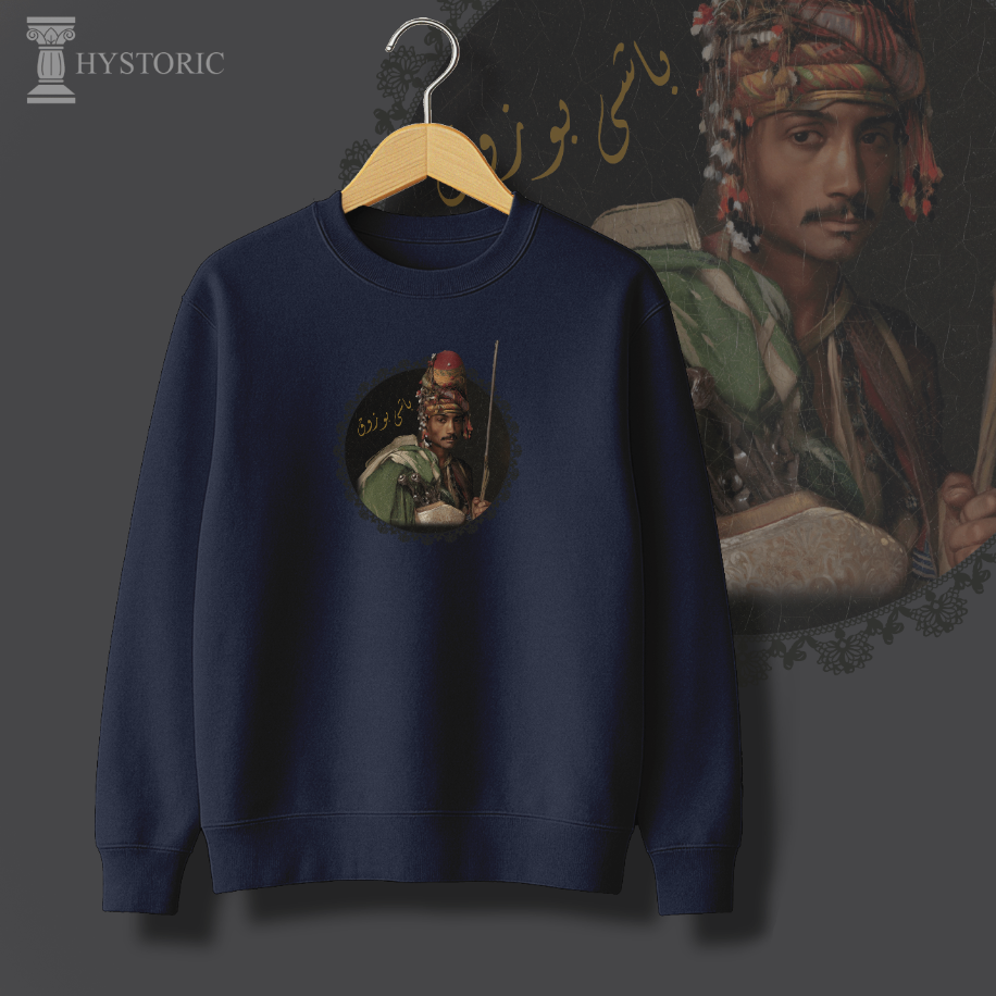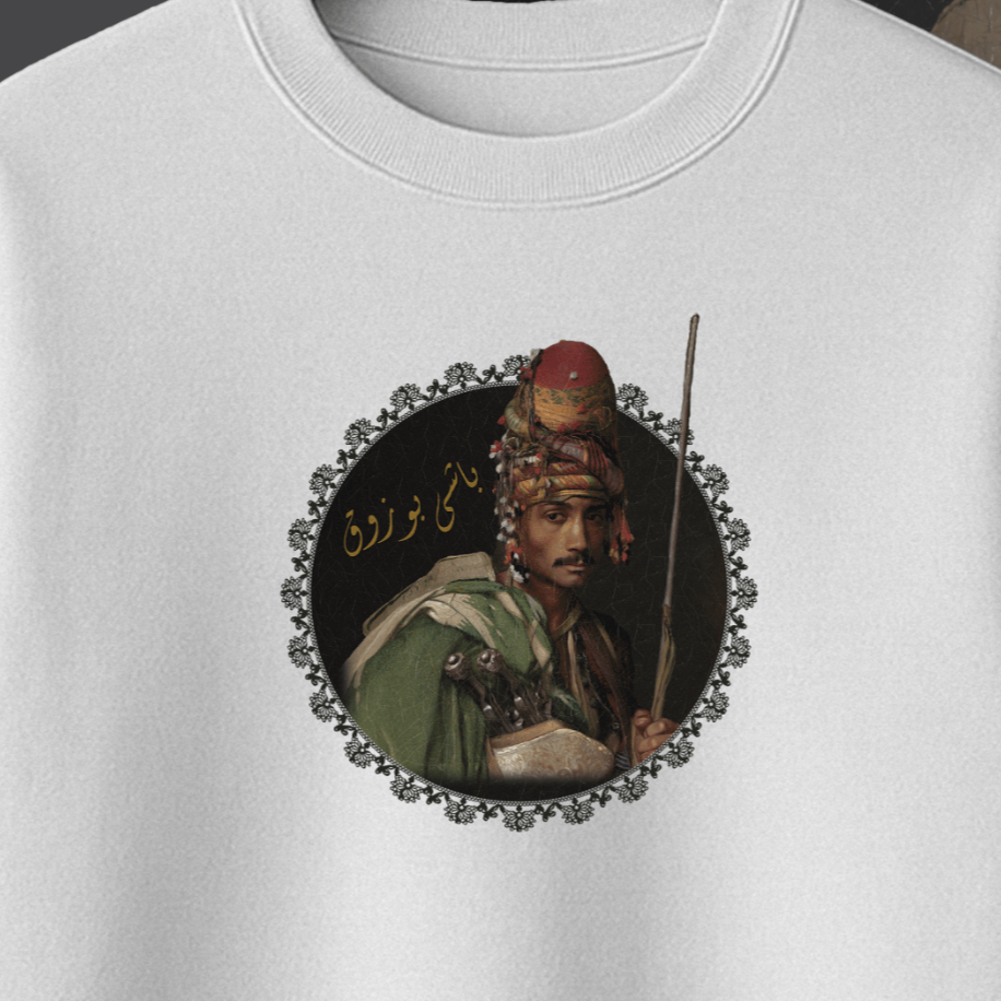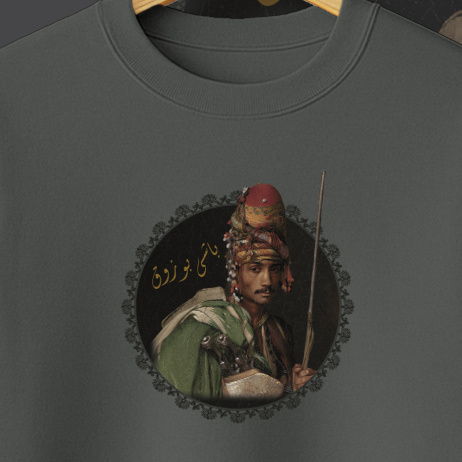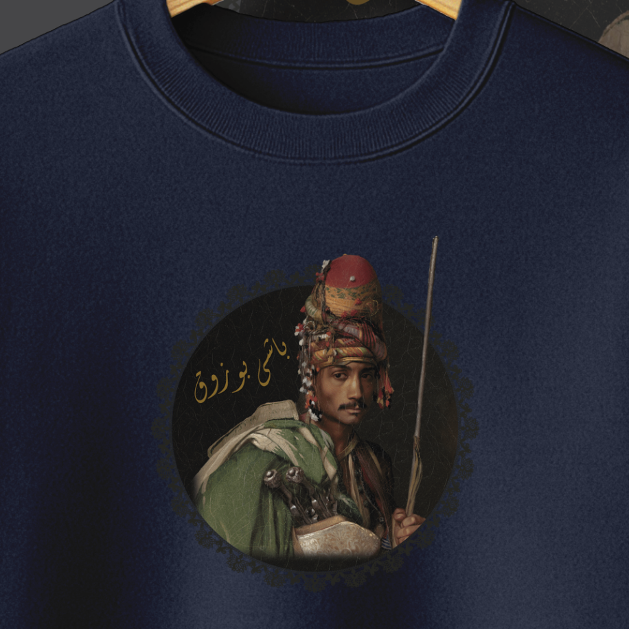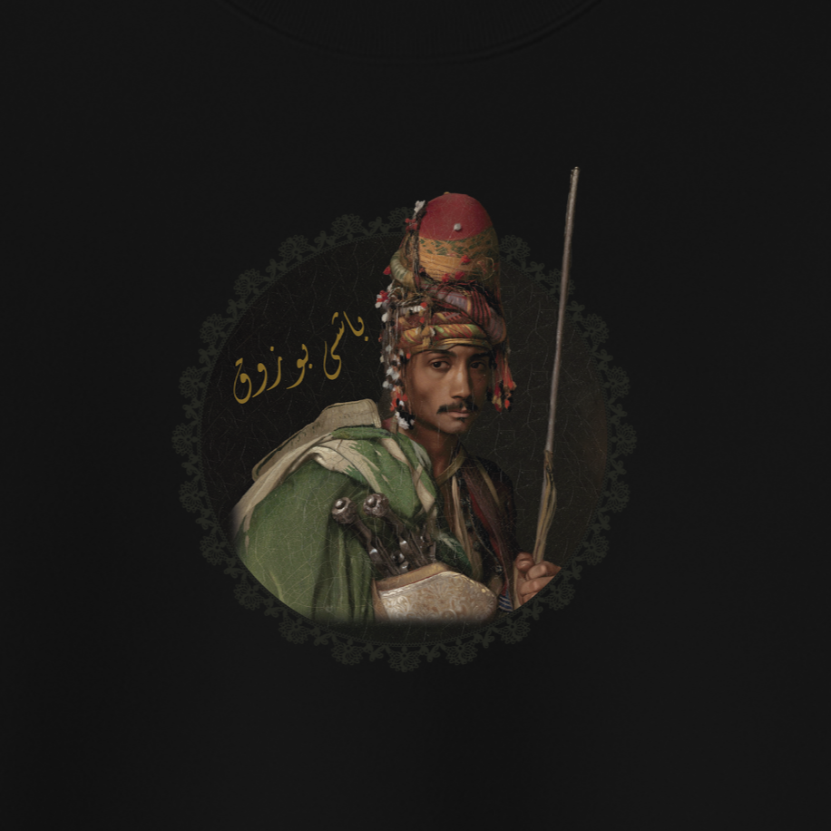 “Başıbozuk” askerleri, Osmanlı ordusuna gönüllü olarak katılan dağınık birliklerdi. Dobrucalılar, Kazaklar, Tatarlar, Çerkesler ve Türkmenlerden oluşan bu birlikler en önde giden, karşı tarafa en büyük dehşeti yaşatan bitirimler, maceracılar ve apaşlardı. Mısır’ın ilk Hıdivi; Kavalalı Mehmed Ali Paşa da başlangıçta, Mısır’ı işgal eden Napolyon Bonapart’ı oradan çıkartmak için sevkedilen başıbozuk askerlerinin kumandanı idi. Bu cesur gaziler, Avrupalıların daima ilgisini çekmiş, Avrupa dillerine “bashi-bazouk” gibi tabirler, lidersizliğin, düzensizliğin, deliliğin sembolü olarak yerleşmiştir. Tasvirini kullandığımız Jean-Léon Gérôme de başıbozukları resmetmeyi pek seven, resimlerinde sık sık bu tasvirlere yer veren oryantalist bir ressamlardan biridir. Orduda başıbozuklar 19. Yüzyıl’da ortadan kayboldu ise de “başıbozukluk” halk dilinde külhanbeylik anlamına gelmiş, başıbozuk kültürü daha sonraları Ege’deki efelerin, eşkıyaların kılık kıyafetine, hal ve tavrına yansımıştır. Başıbozuklar giyim kuşamları ile de hürriyeti yansıtırlar: üst üste bağlanmış yemeniler, sırta atılan Cezayir bornozları, beldeki kuşaktan fırlayan kamalar ve tabancalar… Dolayısıyla koleksiyonumuzdaki bu tercih “Atın iyisine doru, yiğidin iyisine deli derler” fehvasınca, hürriyetin, cesaretin, bir “baş”a bağlı olmamanın sembolü.