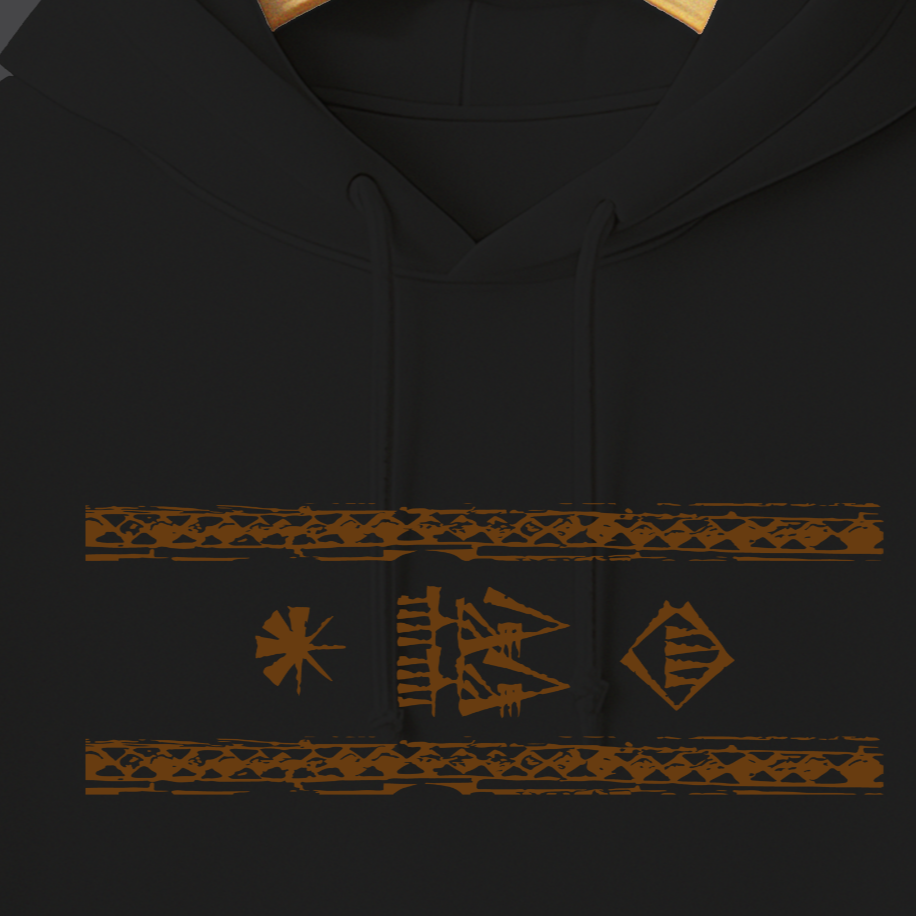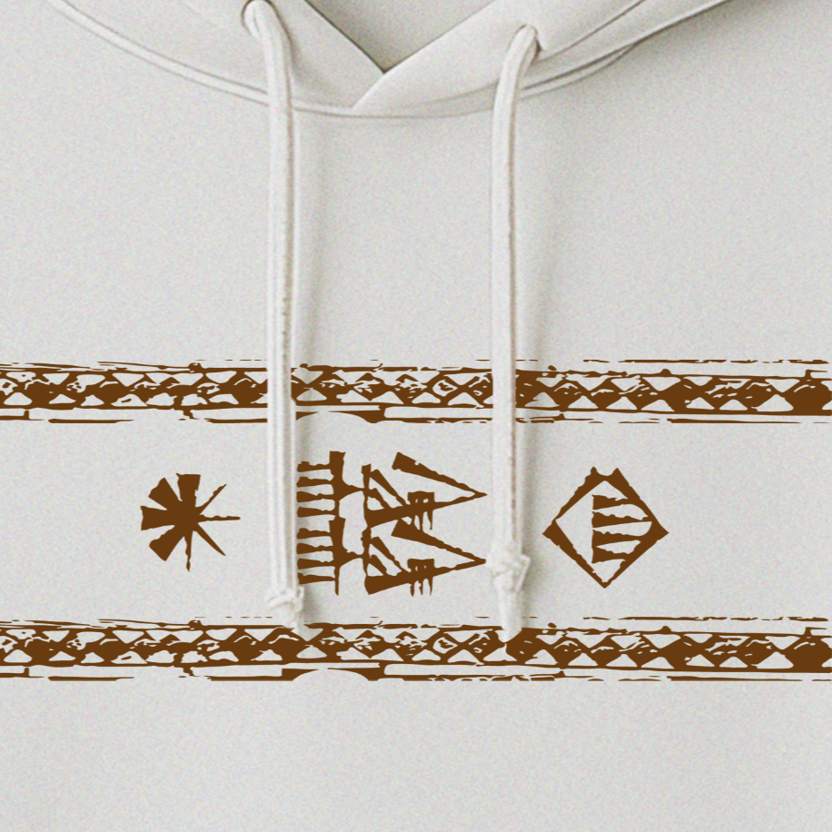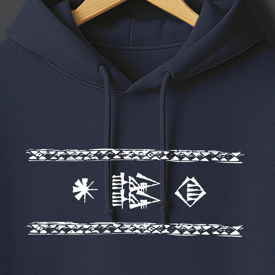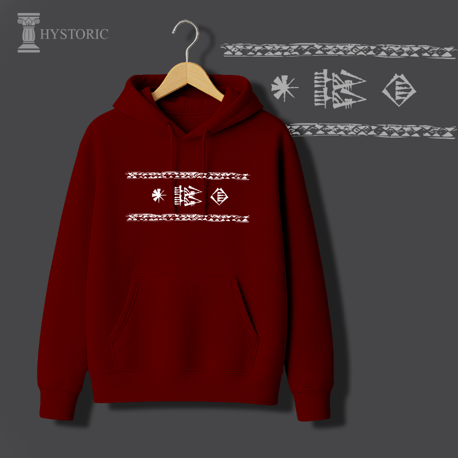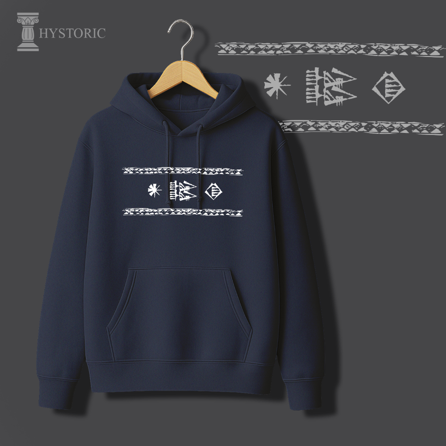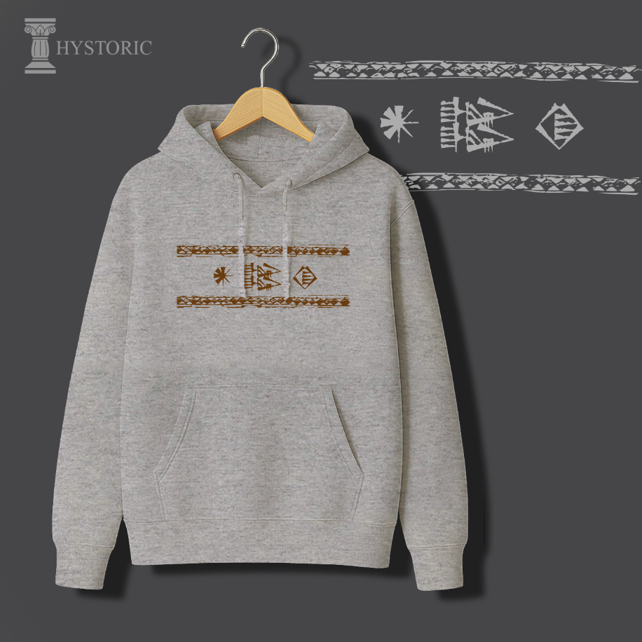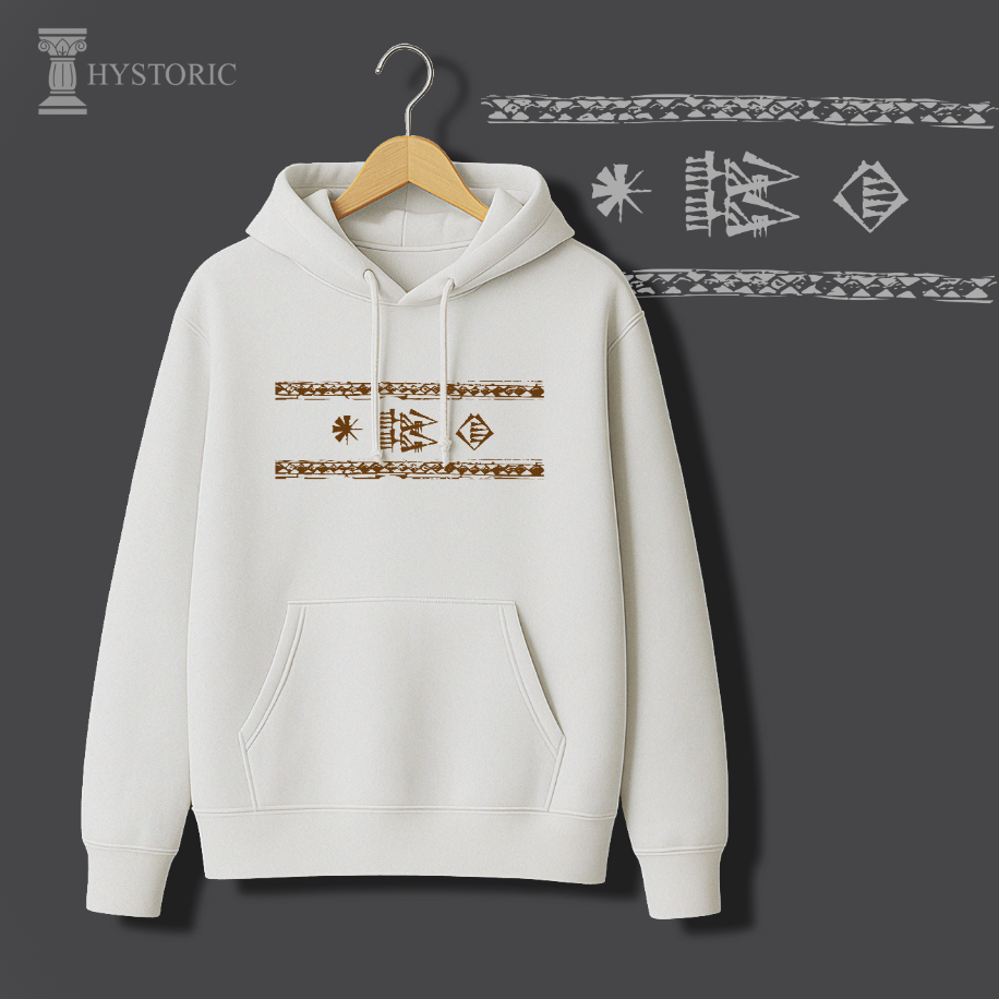 Hystoric Wear’ın Yazı tasarımı, bu büyük buluşun doğuşuna Sümerlerden bir selam gönderiyor. Tasarımda, Gılgamış Destanı’nda sıkça geçen “Gök ile yer arasında” ifadesi minimal biçimde işlendi. Bu ifade, insanın evren içindeki konumunu ve anlam arayışını simgeliyor. Kil tabletlerden bugünün modern yüzeylerine uzanan bu tasarım, geçmişle bugünü aynı çizgide buluşturuyor — tıpkı yazının yaptığı gibi.