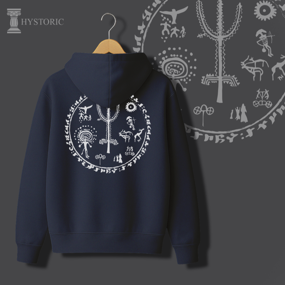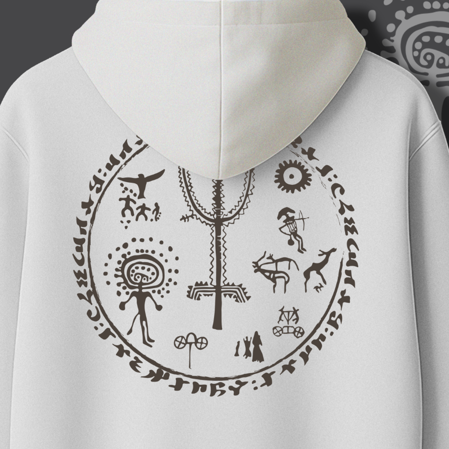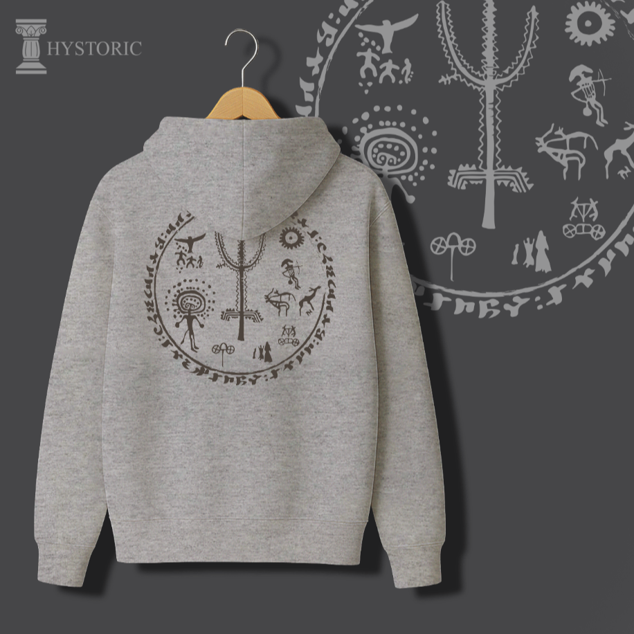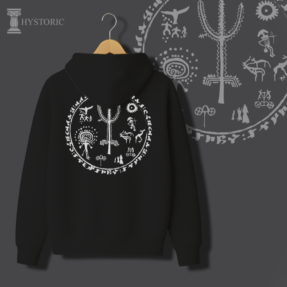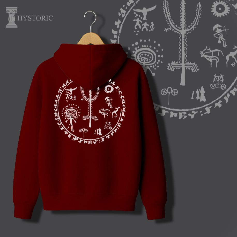 Hayat Ağacı Sweati, kökleri Orta Asya bozkırlarına uzanan kadim bir kozmolojiyi modern tasarım diliyle buluşturuyor. Merkezdeki hayat ağacı, gök ile yer arasındaki ebedi dengeyi simgelerken; etrafında işlenen figürler şamanik kültürün derin izlerini taşıyor. Çerçeveyi kuşatan “Türk, Budun, Kök-Tengri, Töre” kelimeleri ise yalnızca estetik bir unsur değil, aynı zamanda bir aidiyet ve süreklilik ifadesi. Bu tasarım, sıradan bir sweatten çok daha fazlası: kendi köklerine dönmek, tarihsel belleği üzerinde taşımak ve kültürel mirası günümüz modasında ikonik bir sembole dönüştürmek. Hayat Ağacı Sweati, Hystoric’in özgün tasarım diliyle geçmişin ruhunu bugüne taşıyan güçlü bir ifade parçasıdır.