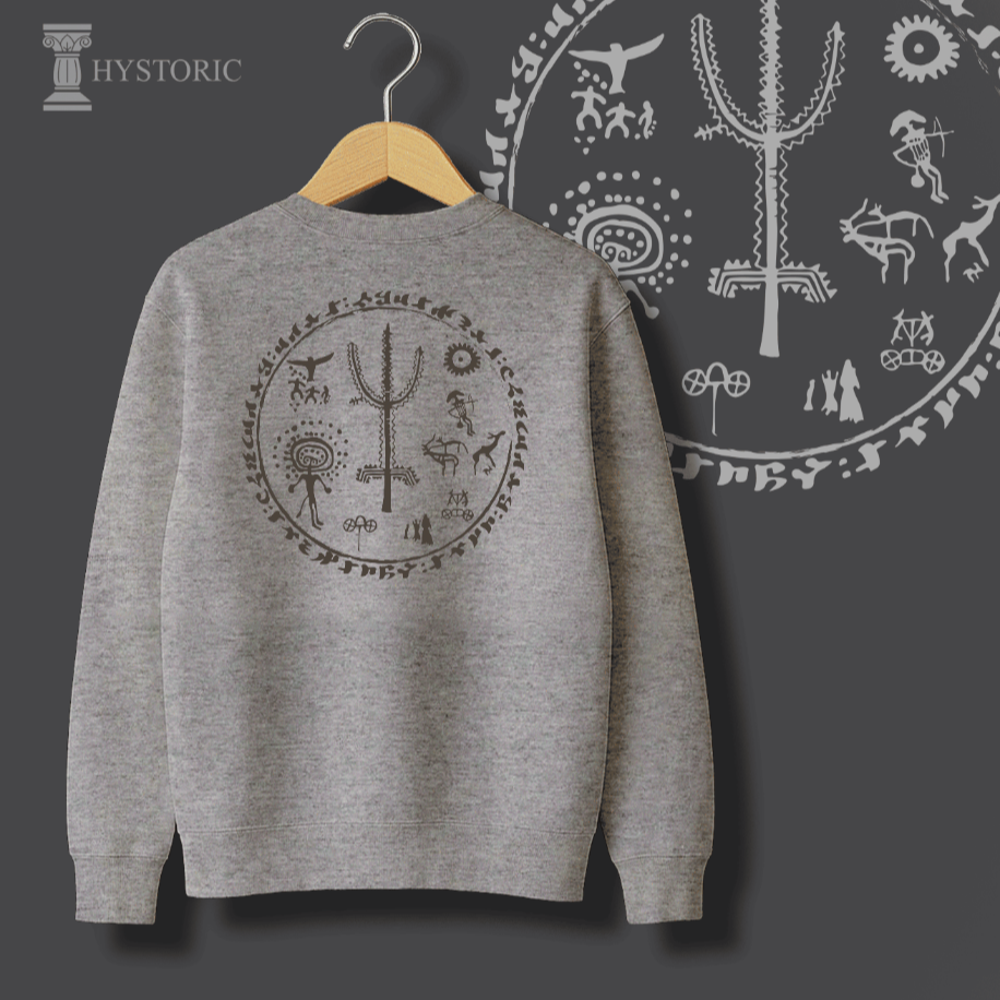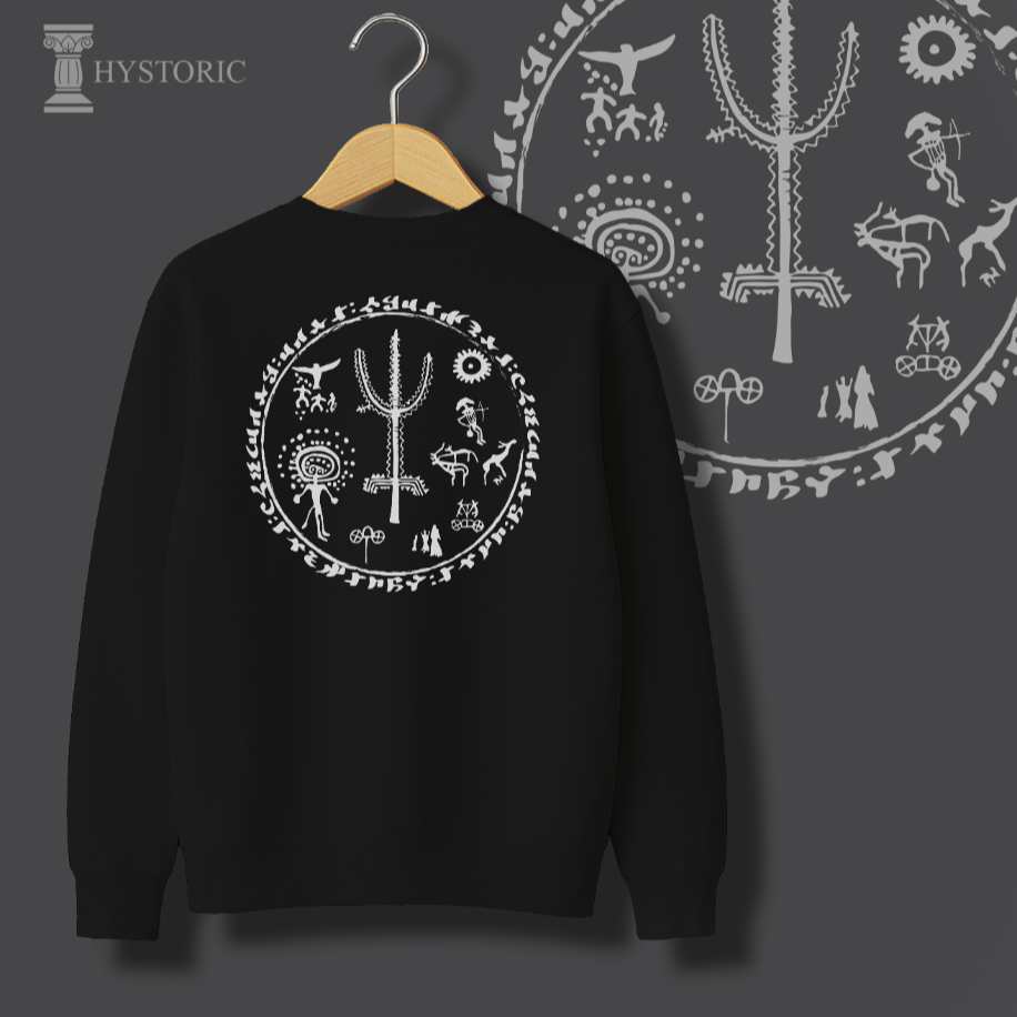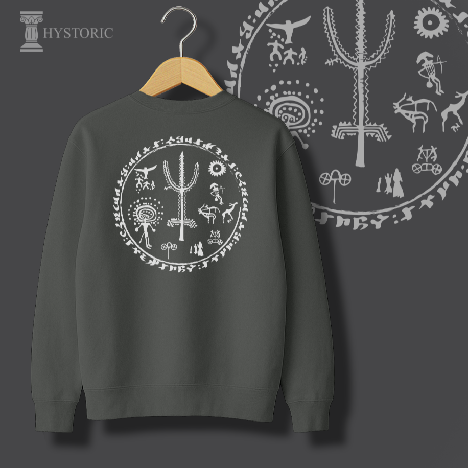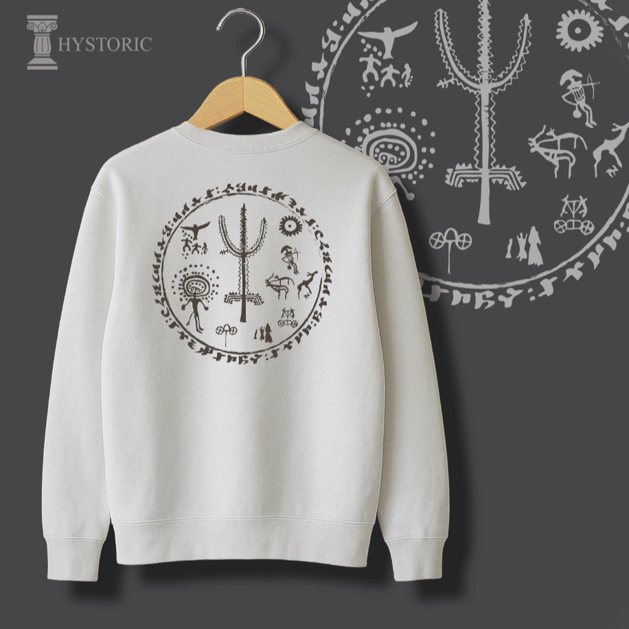 Hayat Ağacı Sweati, kökleri Orta Asya bozkırlarına uzanan kadim bir kozmolojiyi modern tasarım diliyle buluşturuyor. Merkezdeki hayat ağacı, gök ile yer arasındaki ebedi dengeyi simgelerken; etrafında işlenen figürler şamanik kültürün derin izlerini taşıyor. Çerçeveyi kuşatan “Türk, Budun, Kök-Tengri, Töre” kelimeleri ise yalnızca estetik bir unsur değil, aynı zamanda bir aidiyet ve süreklilik ifadesi. Bu tasarım, sıradan bir sweatten çok daha fazlası: kendi köklerine dönmek, tarihsel belleği üzerinde taşımak ve kültürel mirası günümüz modasında ikonik bir sembole dönüştürmek. Hayat Ağacı Sweati, Hystoric’in özgün tasarım diliyle geçmişin ruhunu bugüne taşıyan güçlü bir ifade parçasıdır.