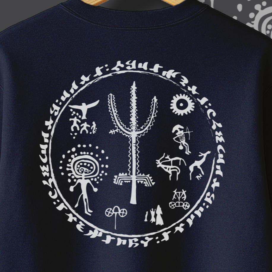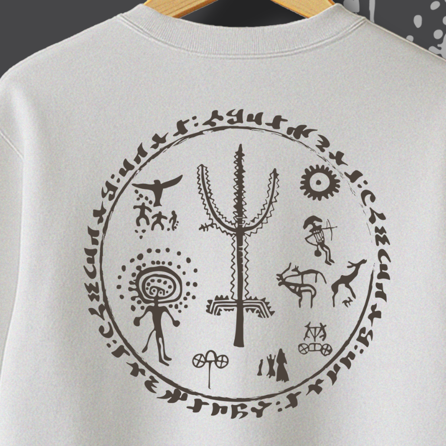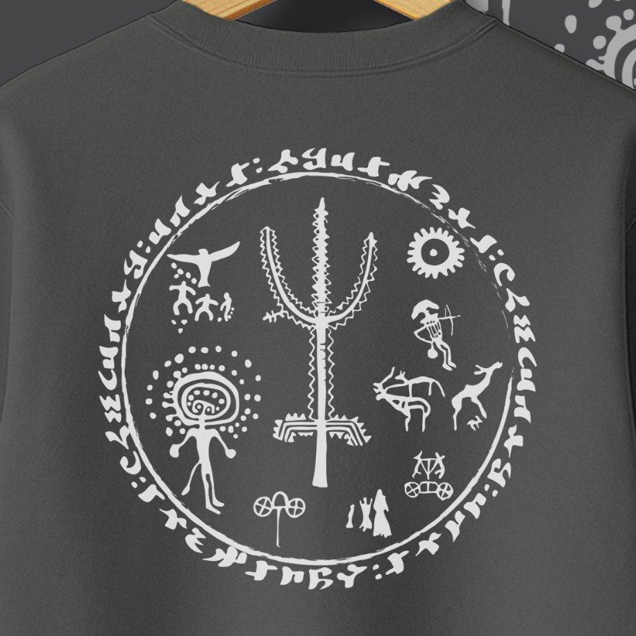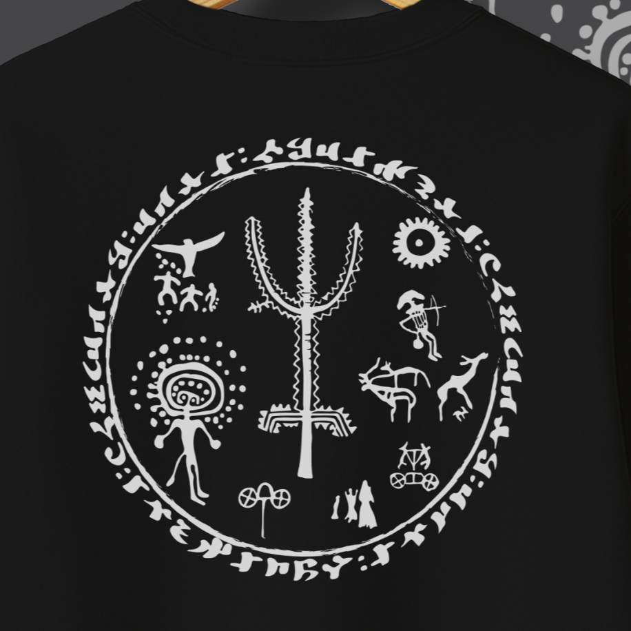 Hayat Ağacı Sweati, kökleri Orta Asya bozkırlarına uzanan kadim bir kozmolojiyi modern tasarım diliyle buluşturuyor. Merkezdeki hayat ağacı, gök ile yer arasındaki ebedi dengeyi simgelerken; etrafında işlenen figürler şamanik kültürün derin izlerini taşıyor. Çerçeveyi kuşatan “Türk, Budun, Kök-Tengri, Töre” kelimeleri ise yalnızca estetik bir unsur değil, aynı zamanda bir aidiyet ve süreklilik ifadesi. Bu tasarım, sıradan bir sweatten çok daha fazlası: kendi köklerine dönmek, tarihsel belleği üzerinde taşımak ve kültürel mirası günümüz modasında ikonik bir sembole dönüştürmek. Hayat Ağacı Sweati, Hystoric’in özgün tasarım diliyle geçmişin ruhunu bugüne taşıyan güçlü bir ifade parçasıdır.