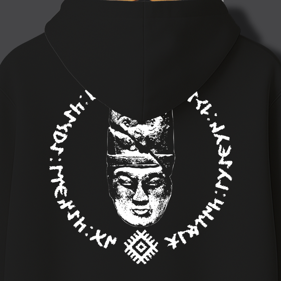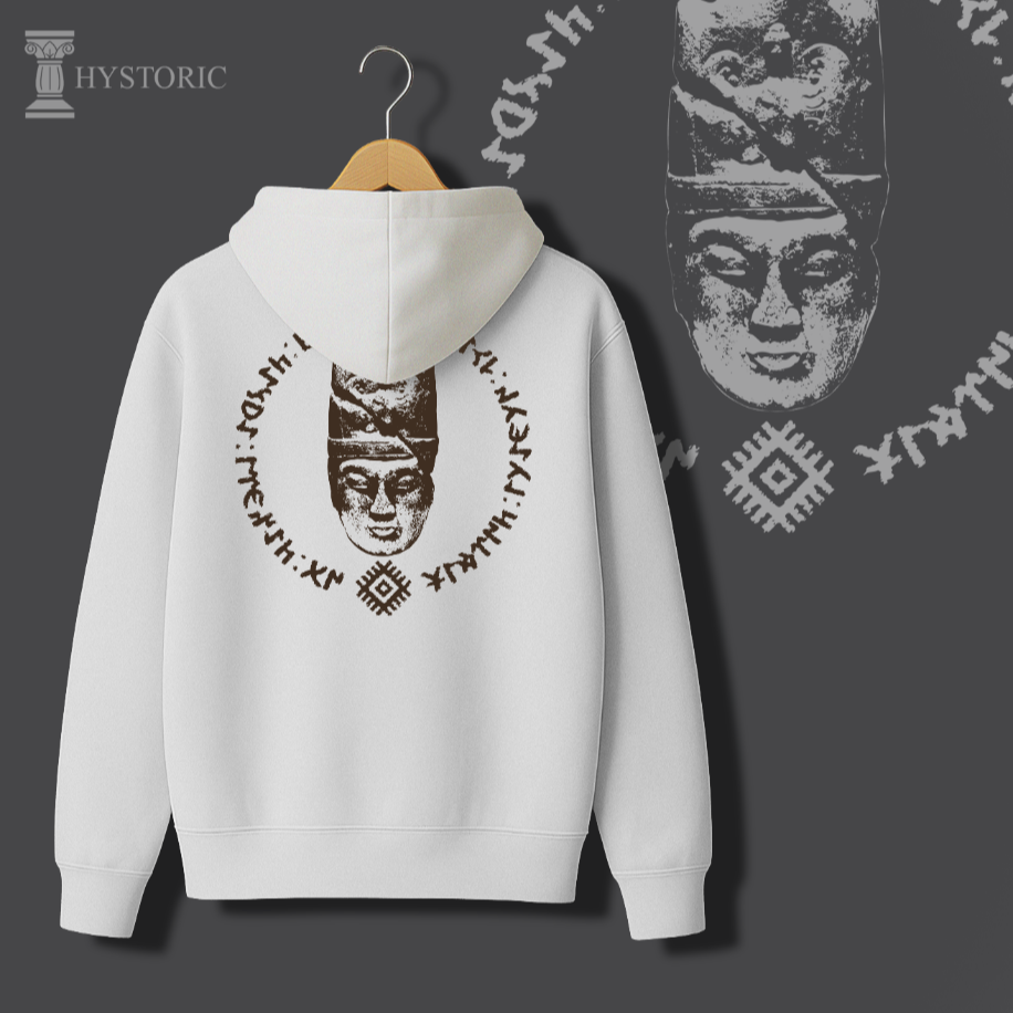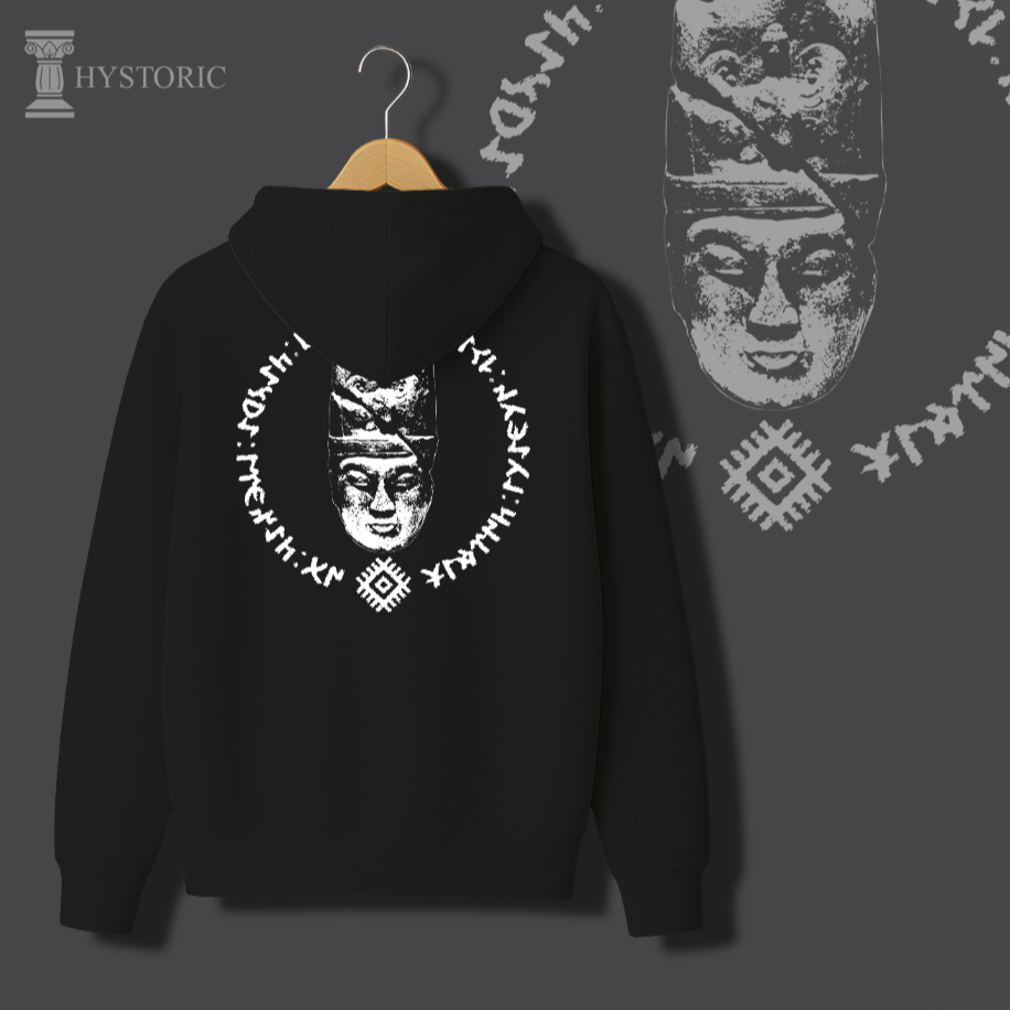 Orhun Yazıtları’ndan ilham alan güçlü bir tasarım diliyle geçmişin sesini bugüne taşıyor. Merkezde Kültigin’in yüzü, çevresinde ise Göktürk alfabesiyle yazılmış “Zamanı Tanrı yaşar, kişioğlu ölmek üzere türemiştir” ifadesi yer alıyor. Bu söz, Türk tarihinin en önemli anıtlarından biri olan Orhun Yazıtları’nın insan, zaman ve Tanrı arasındaki ilişkiyi dile getiren derin anlamını hatırlatıyor. Hystoric’in özgün yorumuyla tasarlanan Kültigin Sweati, yalnızca bir kıyafet değil; tarihsel kimliği gururla taşıyan bir sembol. Kadim yazının estetik gücü ve figürün otoriter duruşu, modern sokak stiline entegre edilerek günlük hayata güçlü bir kültürel dokunuş katıyor.