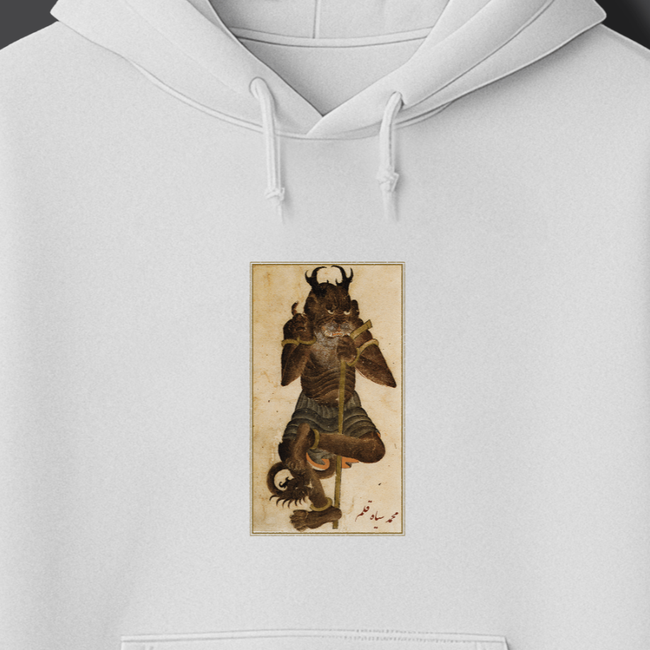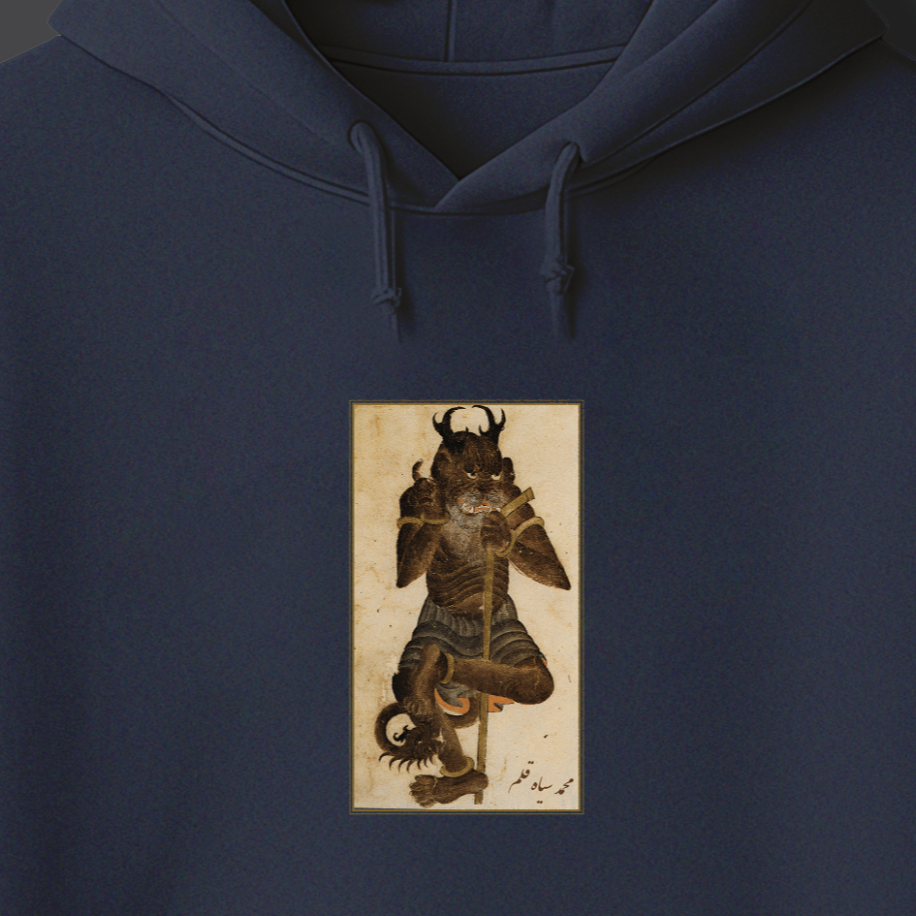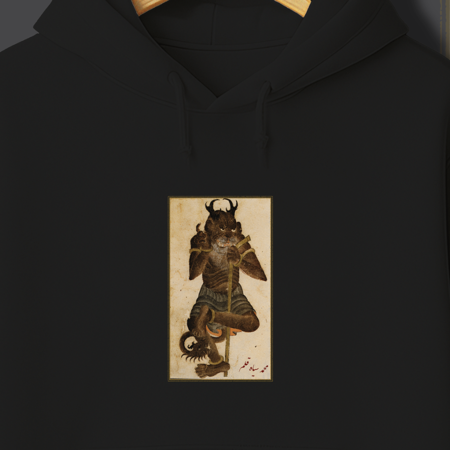 Üstat Mehmed Siyahkalem”in ne zaman yaşadığını bilmiyoruz. 14. yüzyıl ile 15. yüzyıl dolaylarında çizildiği düşünülen tasvirleri, Topkapı Sarayı Kütüphanesi’ne muhtemelen 1514’te cereyan eden Çaldıran Seferi’nin bir hatırası olarak İstanbul’a gelmiş olmalıdır. Öte yandan bu “tuhaf” tasvirler, dört asır boyunca, 1910’daki Münih sergisine kadar sessizliğe gömülmüştü. O günden bugüne pek çok araştırmacı, bu tasvirlerin ne anlattığı üzerine kafa yoruyor. Tasvirlerin Orta Asya/Uygur mirasını taşıdığı açık: yıkılan Cengiz İmparatorluğu’ndan kalan son izler, İpek Yolu’nun tanıdık simaları, Nasturi rahipleri, gezgin dervişler, vahşi ve evcil hayvanlar, Hintliler, siyahiler, şamanlar, maniheistler, tanrılara at kurban eden iblisler, korku saçan cinler ve devler, çalgı çalan ve dans eden muzır mahluklar… Muazzam bir hayal gücü, tekinsiz bir üslupla birleşir Mehmed Siyahkalem’in tasvirlerinde. Biz de koleksiyonumuzda bu gizemli üstada bir yer vermek istedik ve onun imzasını da taşıyan “muhtemelen” bir şeytan ya da cin tasvirini sizler için seçtik.