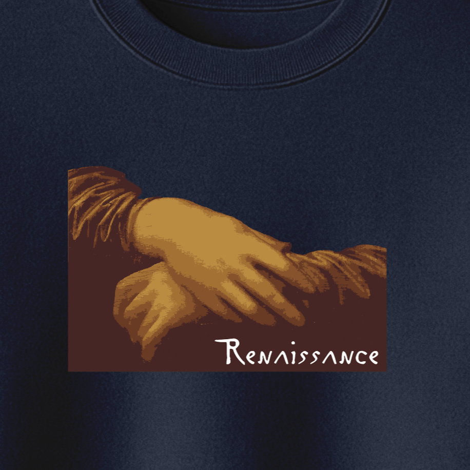 Tasarımımız, bu “yeniden doğuş” anının ruhunu yakalıyor. Koleksiyonun imzası olan toprak tonları ve Orta Çağ estetiğini koruyan bu parça, dönemin sanatsal derinliğini yansıtıyor. Tasarımın odak noktasında ise bu devrimi başlatan kelime yer alıyor: “Reinnesance”. Bu kelime, rastgele bir fontla değil, Rönesans’ın vücut bulmuş hali, dahi sanatçı ve mucit Leonardo da Vinci’nin otantik el yazısı (ayna yazı stili) kullanılarak özenle işlendi. Bu, giyilebilir bir sanat eserinden de öte, insan dehasının en saf haline bir saygı duruşudur.